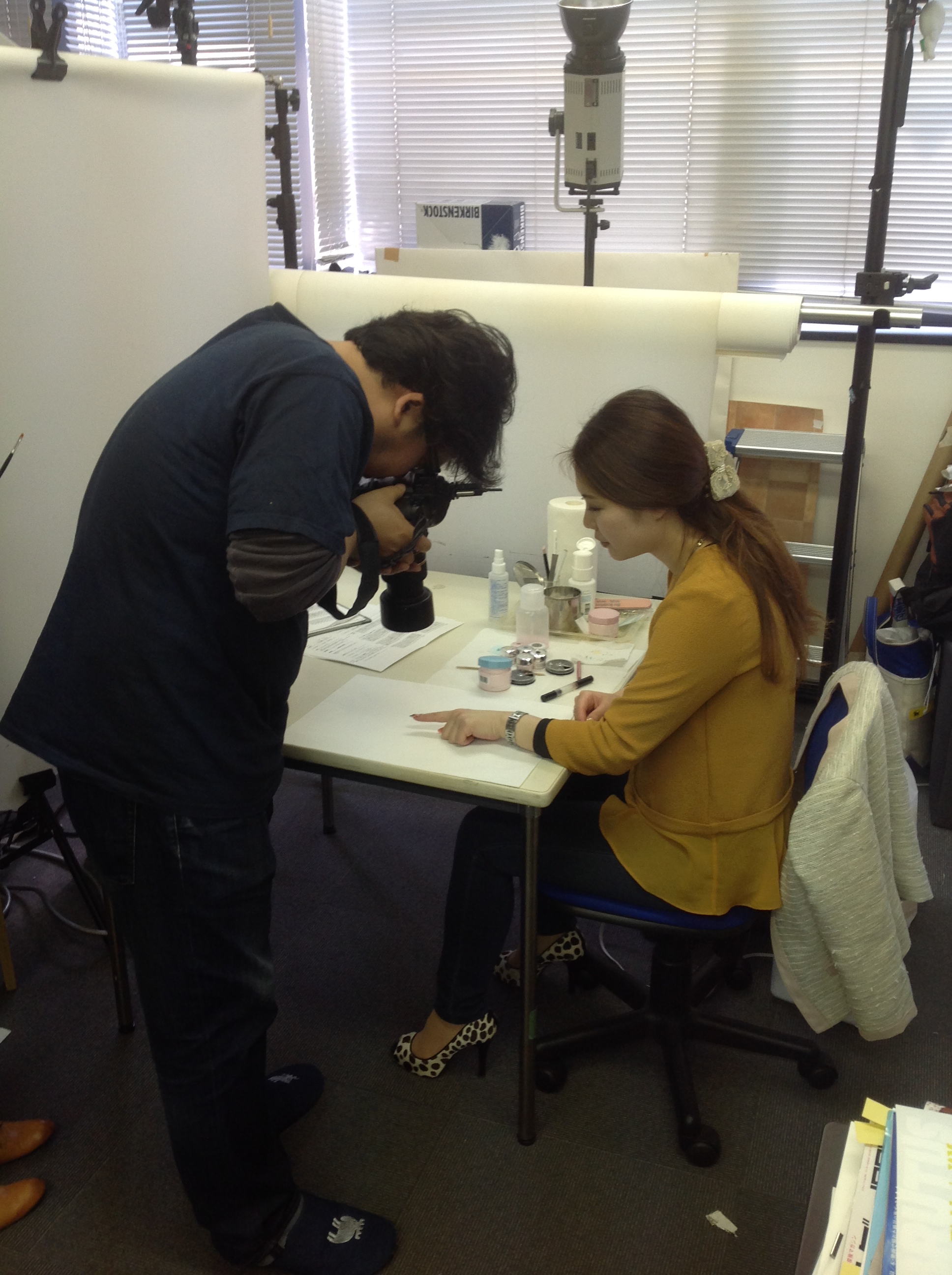 アパレルの撮影と違って、ネイルの撮影ってテーブルの上で出来ちゃうんで「おぉー!業界っぽい!」みたいな感じはないと思います。(笑)